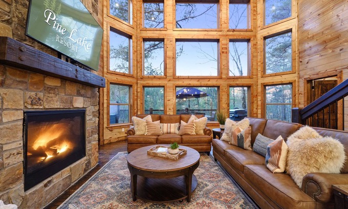 See the awe-inspiring views of the Ouachita mountains from the stunning window wall is located in Broken Bow. See the awe-inspiring views of the Ouachita mountains from the stunning window wall provides accommodation, featuring Fireplace/Heating, Entertainment, Child Friendly, among other amenities. This Cabin features Fireplace/Heating, Entertainment, Child Friendly, to make your stay a comfortable one.