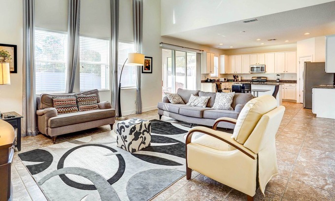 The whole family will feel welcome at this spacious 4-bedroom, 3.5-bath Seffner vacation rental! Located 15 miles from Tampa, this home offers a tastefully furnished interior, tall ceilings, and an expansive backyard for your kids to explore. Chase thrills at Busch Gardens, test your luck at the Seminole Hard Rock Casino, or spend a day under the sea at the Florida Aquarium. When evening comes, prepare a delicious meal in your full kitchen and enjoy al fresco dining on the screened porch!