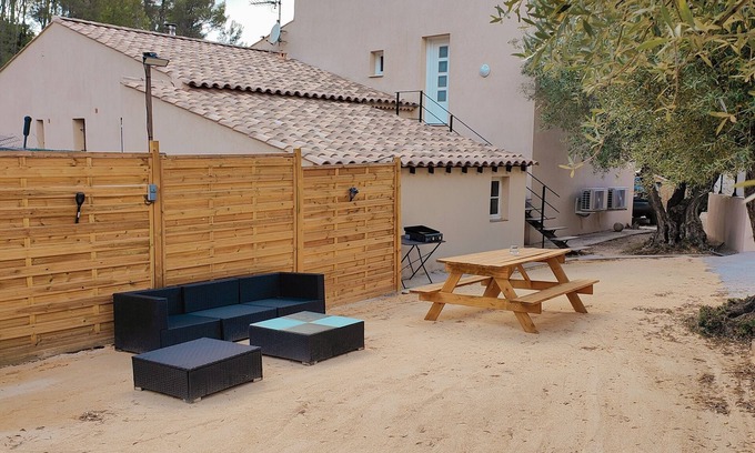 Semi-detached house on 2 levels, 85m², quiet location with garden and air-conditioning Sleeps 6 is located in Le Beausset. Semi-detached house on 2 levels, 85m², quiet location with garden and air-conditioning Sleeps 6 provides accommodation, featuring Air Conditioner, Wellness Facilities, Internet, among other amenities. This Apartment features Air Conditioner, Wellness Facilities, Internet, to make your stay a comfortable one.