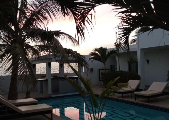 Situated in Somone, Senebreizh offers beachfront accommodation a few steps from Somone Beach and features various facilities, such as an indoor pool, a garden and a bar. The property is located 2.1 km from Ngaparou Beach, 7.8 km from Golf De Saly and 30 km from Popenguine Natural Reserve. There is a picnic area and guests can make use of free WiFi and free private parking. The guest house will provide guests with air-conditioned rooms offering a wardrobe, a safety deposit box, a flat-screen TV, a terrace and a private bathroom with a shower. At Senebreizh rooms are fitted with bed linen and towels. At the accommodation guests are welcome to take advantage of beauty services. Guests at Senebreizh will be able to enjoy activities in and around Somone, like walking tours. Staff at the guest house are available to provide advice at the 24-hour front desk. Accrobaobab Adventure Park is 18 km from Senebreizh. The nearest airport is Blaise Diagne International, 30 km from the accommodation, and the property offers a paid airport shuttle service.