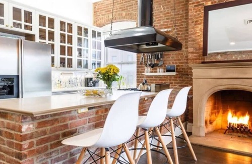 Penthouse Pear Tree, located in a prime spot between Greenwich Village, Union Square, and the East Village. A rustic and charming penthouse that’s uniquely perched upon a historic pre-war building in a vibrant Manhattan neighbourhood. A truly one-of-a-kind penthouse with exposed brick walls, 4 working fireplaces, and 3 full bathrooms, one of them with a steam shower and large jacuzzi tub.