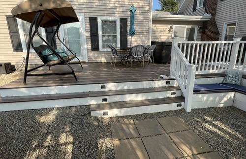 Covered front porch has two rocking chairs and outside table with 4 chairs to enjoy a gorgeous garden in the front of the house. At the back there's an expansive lakeside deck to enjoy the sunsets with a 7 person hot tub (open May through October). Located on a quiet dead-end road with Sampson State Park just a 5 minute walk away leading to over 20 walking trails. New 100 foot dock out over the lake ( bring your fishing gear).