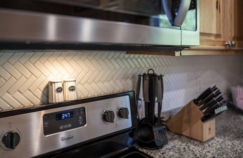 KITCHEN: Fully equipped, stainless steel appliances, dishwasher, drip coffee maker, K-cup style coffee maker, full knife set, toaster, microwave, waffle maker, 6 qt Instant Pot, hand mixer, wine glasses, cooking basics, dishware & flatware