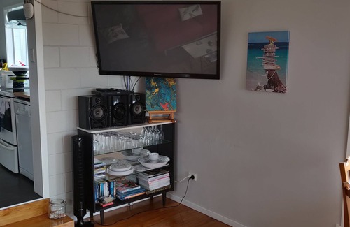Bay View Bach is a self contained one bedroom flat in the garden of our house in the historic town of Maketu. It has panoramic views of the Bay of Plenty - from the Papamoa Hills and Mount Maunganui to the Kaimai and Coromandel Ranges.