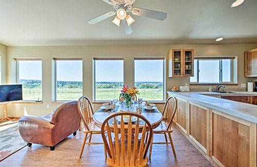 The charming interior offers all the comforts of home, including a flat-screen Smart TV with Netflix and wireless internet access. Kick back and relax while watching your favorite shows, occasionally glancing through the large windows that reveal the stunning farmland and distant mountains.