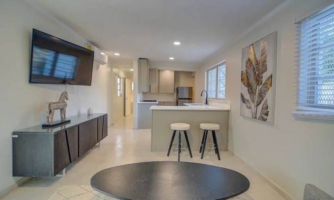 Our condo is tucked in a central yet quiet neighborhood, close to major hotels, restaurants, liquor stores, and groceries. A short distance away lies the BahaMar strip, buzzing with vibrant eateries and shops. The quaint and private setting of our home, coupled with the bustling nearby locales, offers the best of both worlds for a memorable stay.