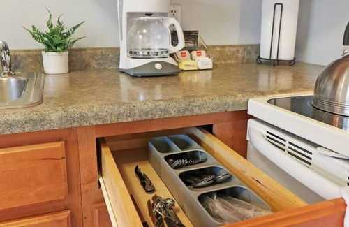 Indulge in a retreat to our tranquil one-bedroom apartment, nestled in a verdant community. Revel in a serene stay with all the comforts of home, featuring Wi-Fi, a fully-equipped kitchen, and inviting furnishings. Ideal for solo travelers or couples seeking a peaceful getaway. Conveniently located within walking distance of local parks, shops, and restaurants.