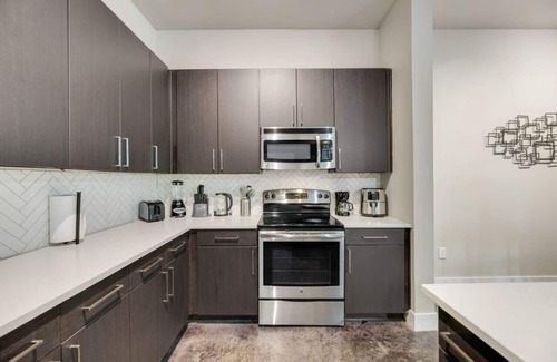 5 mins from the Dallas Love Field Airport, this stylish experience is situated in the heart of the Dallas. This modern and stylish 2-bedroom apartment offers a prime location with easy access to downtown, uptown, Lower Greenville, Deep Ellum, the Katy Trail( all less than 10 mins away). With its thoughtful design, smart home automations and premium amenities, this apartment ensures a comfortable and convenient lifestyle.