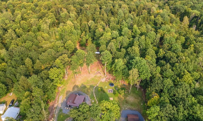 Relax with your family at our 4 bed/ 2 bath cabin on a 5+ ac lot including 2 ac of garden and 5 leveled platforms, a short trail, trampoline, climbing dome, swings, sandbox, hammock, kayaks etc. Located at the highest [2100 ft] elevation in the county with many birds, small mammals and deers around us, on a quiet town road with very low traffic and close to 5 lakes and 6 state parks. Mountain views from upper lot and 1-min drive to Summit lake (public access) IG @lechalet.summitny2100