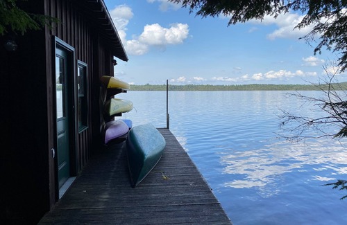 Beautiful Adirondack home right on Upper Saranac Lake with multiple cabins, great for big groups and families!