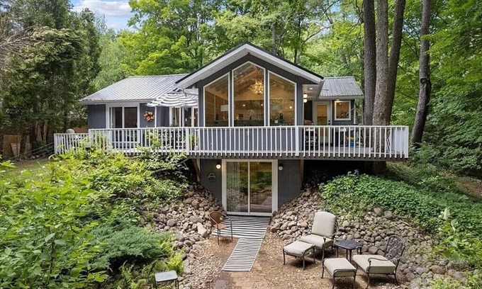 Our two-level home offers a peaceful escape with waterfront access to the picturesque Lake Gay. It is a small, quaint lake covering approximately 10 acres and is 0.3 miles in length. As a motor-free lake, it maintains the utmost tranquility, allowing you to connect more closely with nature. Embark on fun filled kayaking and canoeing trips across its calm waters.