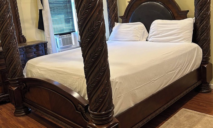Get ready to relax in this 1-bedroom apartment in Paterson. The lovely bedroom features a comfortable king bed, with luxurious thick pillow top mattress perfect for a good night's sleep. A comfortable living room with Italian leather coach and a tv with multiple movie streaming apps. With amenities like heating, AC, and an iron, guests will feel right at home. The bathroom includes a relaxing bathtub for unwinding after a day of exploring. We hope you'll enjoy your stay at our apartment. Approximately 20 mins away from MetLife Stadium . Public transport to New York 1 min walk with NJ transit. Apt is located off Route 20 which leads seamlessly into Routes 80,46 and 21. We are very central and area is peaceful as we have an active neighborhood watch.