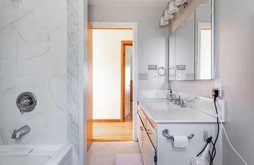 The accommodating home features two full bathrooms stocked with essential toiletries and pampering towels to ensure a carefree stay.