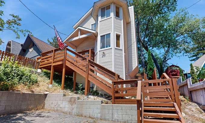 Nestled perfectly between the serene Lake Arrowhead and the picturesque Big Bear Lake, this charming cabin in Running Springs, CA, is your ideal getaway for outdoor adventures and cozy family gatherings. Just a short 20-minute drive to either lake, you can easily indulge in boating, swimming, kayaking, or paddleboarding. After a day of exploration, unwind on the back patio, complete with comfortable seating and a gas grill, perfect for cooking dinner for your group.
