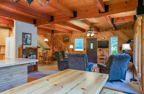 Step outside to your private haven, where 21 acres of wilderness await your exploration. Roast marshmallows around the fire pit, fish for trout along the riverbank, or simply soak in the beauty of nature from the comfort of the deck.