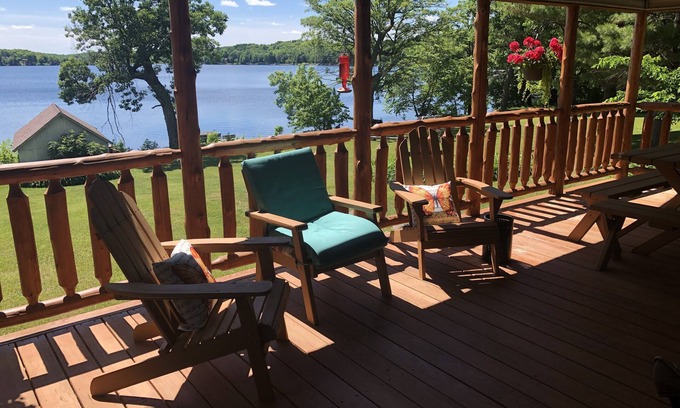 Unwind in this charming cabin, nestled in nature’s beauty, complete with a large deck offering breathtaking views. Spend your days fishing or swimming in the pristine waters, or enjoy the tranquility of the small, private lake adorned with peaceful lily pads. Whether you’re seeking adventure or relaxation, this secluded escape provides the perfect setting to reconnect with nature and recharge. This cabin get away is set on Big Pine Lake with amazing views of the water and sunsets from the large, lofted deck. There is also a small private lake behind property which is wonderful for private canoeing and fishing. It's only 2 hours north of the twin cities near Brainerd. The fishing is great right off either dock. We have 2 docks: one on the Big Pine Lake and one on the small lake. You can catch Sun fish, Crappies, small mouth Bass, and Northern Pike on both lakes. On Big Pine Lake water is about 2 feet at entry and is nice and clear for swimming. You can bring your own boat; public access is down the road. A Rowboat, canoe, and paddle board are available to use on the lakes. In addition to the lakes, there is lots of wilderness to explore (30 acres). The Master Bedroom has a king size bed new flat screen TV. Master bathroom has a shower and separate jetted tub. Bedroom 2 has a queen bed. Bedroom 3 has a queen and bunkbeds. Fire pit yes! Our son cut firewood for all and accepts donations. And the kitchen is stocked with all the cooking essentials. Propane Grill on the deck. Amazing views and memories to be made.