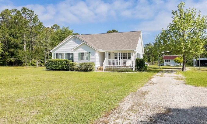 Recently refurbished home on beautiful 3 acres with a pond - a quiet retreat while only an easy 10 minute drive to the white sandy beaches at Perdido Key. The best of country living close to all the fun - 12 minutes to National Naval Aviation Museum, 1 mile to shopping (Walmart, Target, Sonic, Starbucks, Hersey's Ice Cream and Aldi's) and views of the Blue Angels practice runs from the comfort of your backyard.