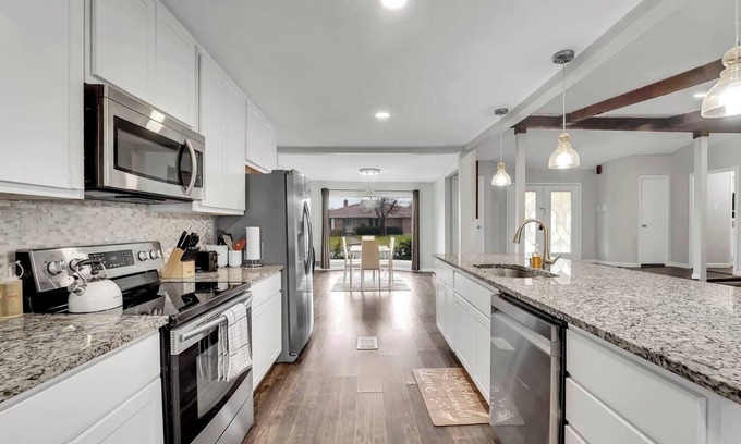 Nestled in Garland, this apartment brings it all within your reach. Fans of nature and the outdoors will love being 6 minutes by car from Lake Ray Hubbard and 18 minutes from Fair Park. With convenient onsite parking, you'll be ready to make the 14-minute drive to Galleria Dallas or the 20-minute drive to American Airlines Center.