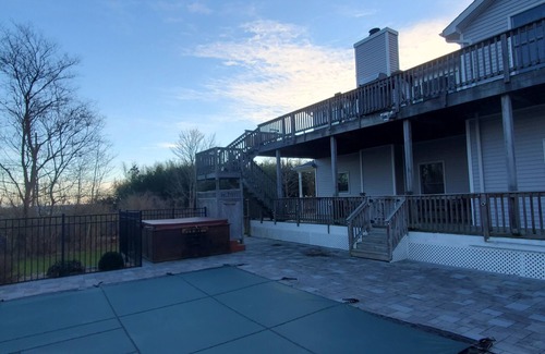 Beautiful custom build newly renovated North Fork Home. Backyard oasis with pool, brand new hot tub, shower and fire pit. Walkable private beach. Across the street from the Cross Sound Ferry. Driving distance to Orient Point State Park, Restaurants, Wineries and much more.