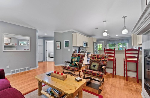Welcome to Blue Bear Cottage, hosted by Simple Life Rentals! This charming vacation home offers a serene retreat for up to six people. The primary bedroom has a comfy queen bed, full ensuite bathroom, and a Peloton bike for avid riders! Make sure to bring your own shoes! Bedroom 2 features two full beds and adjacent bathroom off the hallway. The spacious living room features a Smart TV with Roku, a wood burning fireplace, and a pull-out queen sofa sleeper.