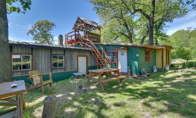 Offering plenty of spaces to curl up and get cozy, this 1-bedroom, 1-bath Green Forest vacation rental was made for rest and reflection with loved ones. When you're not admiring the surrounding views off the rooftop deck, get a fire going in the wood-burning fireplace and watch a movie on the Smart TV. For a bit more adventure, take your pick from exploring the depths of Cosmic Cavern, hiking through Dogwood Canyon Nature Park, or spending the day enjoying the various attractions of Branson.