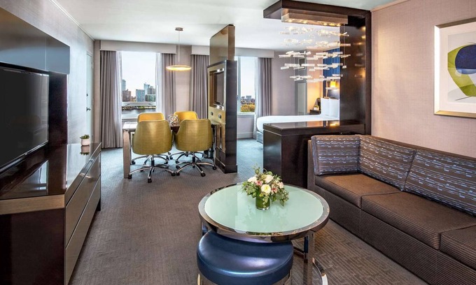 Step into our luxurious retreat and soak in the comfort and style. Enjoy a dip in our indoor pool under a breathtaking glass atrium roof. Keep up with your routine in our top-notch fitness center, or treat your taste buds at our on-site restaurant. Perfect for your Cambridge explorations or college visits, this we’ll be your cozy home base. From your spacious room or suite, marvel at the iconic Charles River and Boston skyline views.