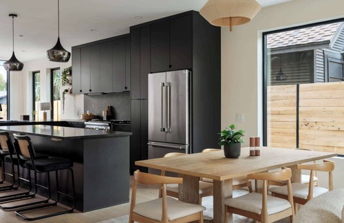Unwind in the private plunge pool, cool down in the cold plunge, and recover in the in-home red light therapy sauna. Start your day with movement in the private yoga & fitness studio (converted garage), or center yourself in the peaceful meditation room with shoji-inspired walls. Inquire for events!