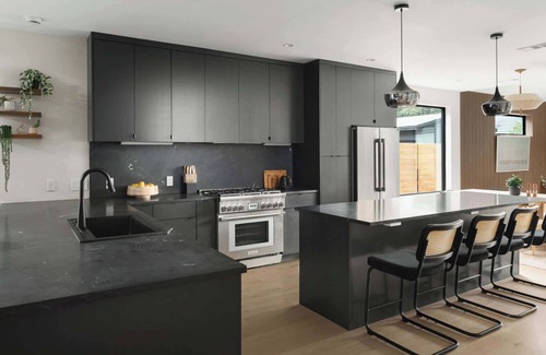 Inside, every detail has been designed for calm and comfort. From Quince organic bedding and HEPA air filtration to natural textures and minimalist styling, the home offers a serene atmosphere throughout. The open-concept living spaces feature soaring ceilings and abundant natural light, making them ideal for entertaining.