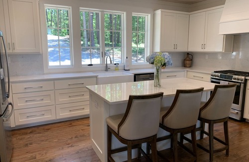 This 5-bedroom, 4.5-bathroom newly built Lake Martin residence provides plenty of relaxation and the perfect weekend spot to gather with family and loved ones! Featuring an array of household amenities and ample living space - both outside and inside - spread out and kick your feet up for an idyllic vacation at Alabama's most beautiful lake! This home offers a screened-in porch with large flat-screen TV (awesome for fall football!), along with two indoor seating areas that open to both a kitchen and dining area. The large, well-appointed kitchen boasts plenty of counter space for meal preparation and serving and comes stocked with stainless steel appliances, utensils, glassware and more. The dining area is situated in front of a full wall of floor-to-ceiling windows, offering an incomparable view of the water and sunset - the perfect complement to dinner. On the main level are two master suites, each with its own king-size bed and walk-in shower, as well as a separate powder bath and a laundry room.