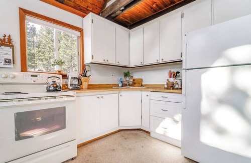 Your next mountain retreat is calling at this 2-bed + loft, 1-bath Soda Springs vacation rental! Perfect for small families or groups of friends, this cabin features a cozy living area with a TV, a well-equipped kitchen, and access to the area’s most popular outdoor recreation. Enjoy a peaceful hike with your pup through Van Norden Meadow, then catch some rays on the community beach! Traveling during the winter? Shred the slopes at one of the many nearby ski resorts. Year-round fun awaits!