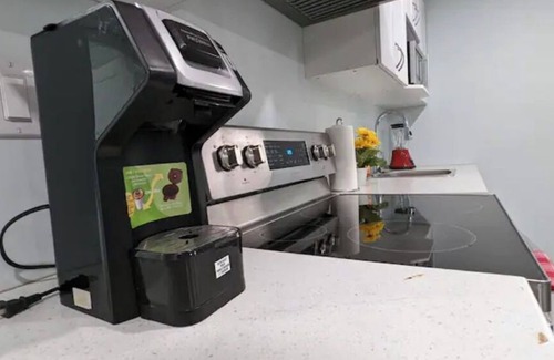 This basement suite is conveniently located in a new and serene neighborhood. It is fully equipped with kitchen, Keurig coffee maker with complimentary coffee and tea pods.