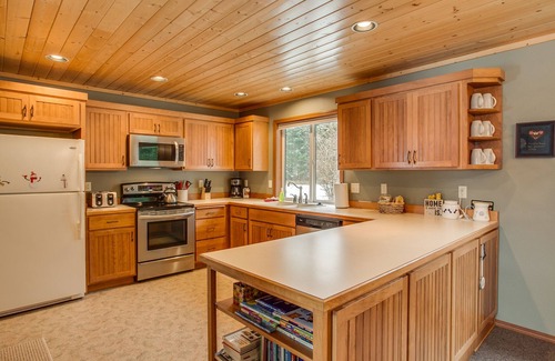 This beautifully appointed 3 bedroom plus loft, 2 bath cabin has everything you need for you, your family and your dogs to enjoy a serene stay amongst the stunning Cascade mountains with wood-burning fireplace, plenty of room for your dogs to run, big kitchen and common areas, high-speed internet (100Mbps) and a loft for the kids. There are games for the family to play... AND a hot tub to relax in.