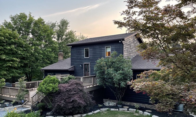 Nestled on top of Great North Mountain, surrounded by wineries and ski resorts (Bryce and Whitetail are 39 miles away), you will never want to leave. This charming cabin is ideal for quiet walks through the forest, outdoor meditation, relaxing in a hot tub while taking in forever views, getting a massage in front of the sun setting, practicing at the shooting range, or sitting in the infrared sauna and cooling off in the outdoor shower. Kids can climb trees, search for tadpoles in the pond or build forts and enjoy the perfect s’mores while sitting in front of the bonfire.