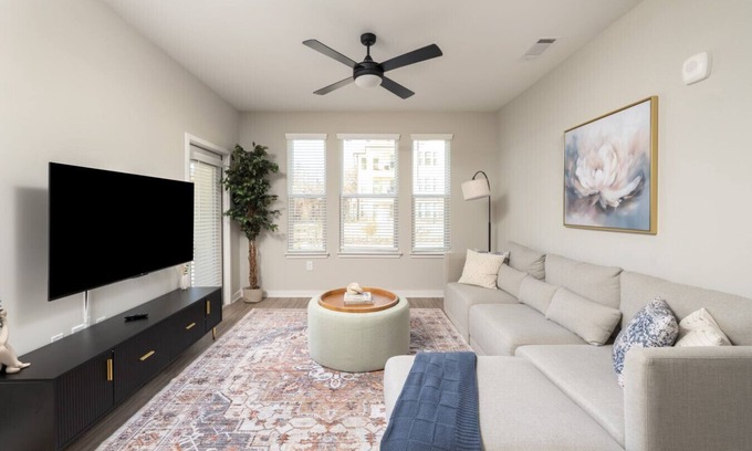 Welcome to our modern and well-furnished living space, where luxury meets comfort. As you step into this contemporary apartment, you'll be greeted by the timeless elegance of hardwood floors that stretch seamlessly throughout the entire space. Each bedroom comes with a walk-in closet. The master and secondary bedrooms offer luxurious king-sized beds with memory foam mattresses. Kick back and relax with flat-screen smart TVs set up with Netflix and Hulu.
