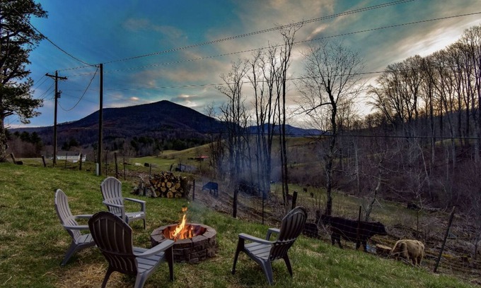 Entirely renovated, this darling cottage overlooks the meadow with stunning mountain views. Located 5 min to charming downtown West Jefferson. This vacation cottage has so much to offer! With its location, you can enjoy outdoor activities such as hiking, canoeing/kayaking, fishing, along the New River, nature walks and biking on the Blue Ridge PKWY. The cottage is stocked with many convenient amenities and also offers an area for outdoor dining with a charcoal grill and an open fire pit.