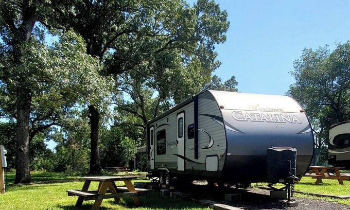 Book your Catalina RV Camper stay (at Sentinel Oaks RV Park, Pinehurst, TX) today!