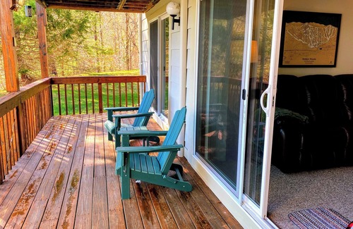 Enjoy the spaciousness of our garden-style, two-bedroom, two-bathroom condo, sleeping six, with its appealing open layout and warm gas fireplace. The over-sized primary bedroom suite opens directly onto a private deck with stunning mountain and pond views. Just a one-minute walk brings you to the recreational center, a hub of family fun with indoor and outdoor pools, a fitness center, tennis and pickle ball courts, and much more! Catch the Loon Mountain shuttle for convenient rides to and from the slopes, ensuring you're there for the first chair. You're also just minutes from downtown Lincoln's unique restaurants, breweries, and local attractions.