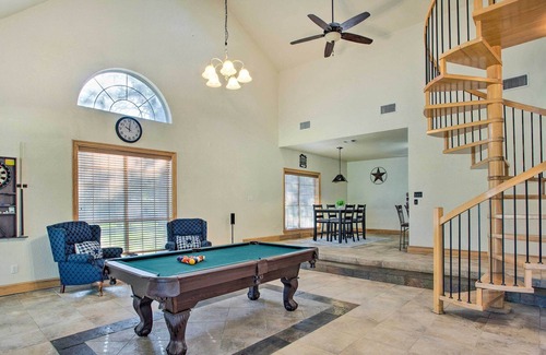 Bring the family to this lakefront Quinlan vacation rental to make memories of outdoor fun and scenic views! This modern 5-bedroom, 4-bath home has easy access to Lake Tawakoni where you can enjoy kayaking, fishing, and boating on the water. Be sure to explore Lake Tawakoni State Park, jump around at Urban Air Adventure Park, or take a day trip to vibrant Dallas for tons of attractions. End your days watching the sunset from the deck or through the floor-to-ceiling windows in the living room!