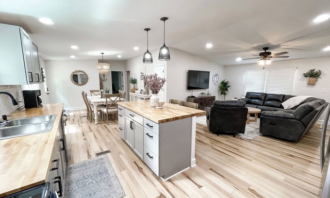 If you have a large party, our neighbors also have a home that sleeps 8 next door. Search for “Peaceful 3-bed, 2 bath cozy home near the lake” on the shorter-stay platform.
