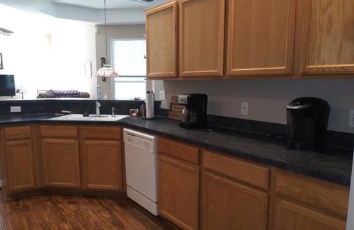 Our home is a modern gem with cathedral ceilings and faux wood flooring throughout the kitchen and family room. Enjoy sitting back on an easy chair looking out over the shady treelined back yard. Or take a peaceful stroll outside enjoying the Florida breeze. Check out the many varieties of birds, cranes and hawks that inhabit the area along with the occasional deer that comes by.