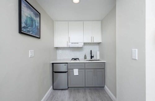 Everything you need and nothing you don't. Our motto is to provide fairly priced furnished apartments in great locations. The location will make up for the cramped space, but I think you'll find that once you settle in, you don't always need a ton of space! This unit is unique because it has a long hallway once you enter the apartment and the space is located in the back of the building so it should be super quiet.