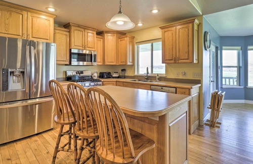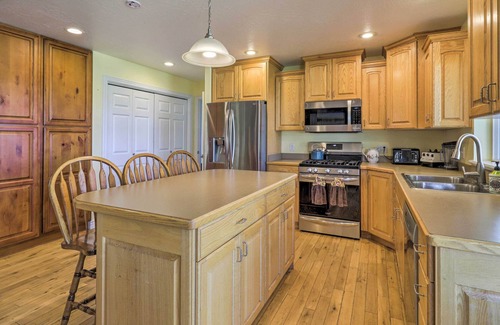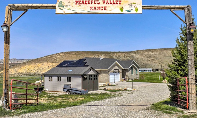 Experience life on the 'Peaceful Valley Ranch' at this spacious 7-bedroom, 3.5-bath vacation rental in Sterling. Featuring a rustic and spacious interior with 2 full kitchens and access to a fire pit, patio, volleyball court, and more, this family-oriented unit is the perfect Utah retreat! Explore Palisade State Park, soak up the sun on Palisades, or simply soak in the mountain views from the hot tub. After a day of adventure, enjoy the home theater system to watch your favorite movies!