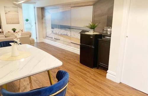 This new Basement Studio is the perfect size for 1. The apartment has it's own separate entrance. It offers a living & dining area, bathroom & kitchenette, all private. Plus a comfy Queen size bed with Memory foam mattress.