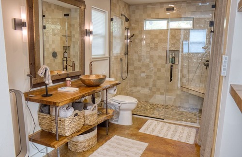 Tucked in a wooded one-acre lot, this new retreat blends luxury, nature and ease of access to Austin's events. The covered patio offers an ideal setting to embrace the morning serenity or indulge in sunset dining. High-speed internet ensures seamless remote work and HD streaming. Conveniently located between downtown Austin and the Hill Country is great for Hill Country weddings, wine country, SXSW, CODA or ACL Festival. Whatever you're here for, an unforgettable experience awaits.