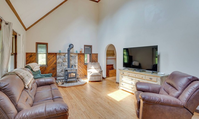 Escape to the beauty of Upstate New York at this spacious 4-bedroom, 2-bath vacation rental in Saint Johnsville. With its cozy wood-burning stove and tranquil 11 acres of natural surroundings, this home is perfect for creating lasting memories. You can spend a day at East Caroga Lake, hike the nearby trails of the Adirondack Mountains, or hit the slopes of Royal Mountain. After a day of adventure, return to the comfort of this charming house for peace and relaxation.