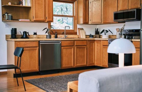 The property is equipped with recreational gear, including board games, a telescope, binoculars, and yoga equipment, ensuring a memorable and enjoyable stay.There is also a dedicated work space, with a view! Immerse yourself in the unique charm of this newly updated retreat, where contemporary comfort meets the serenity of the woods.
