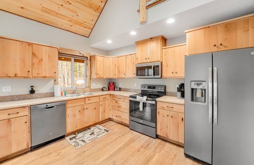 From the gorgeous woodland setting to the serene and spacious interior, Big Sky Cabin is a place to find true relaxation in a spectacular pocket of Montana. Whether it's the crystal-clear waters of Flathead Lake or the breathtaking trails of Glacier National Park that fill your days, it's a joy coming home to roast s'mores by the outdoor firepit and recount the day's adventures in the cozy warmth of the gas fireplace.