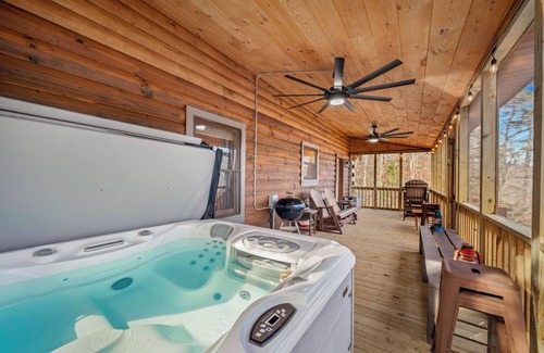 The new screened-in back porch is a true highlight of the cabin, offering spectacular views of a beautiful river valley overlooking Little River. This serene space is perfect for enjoying morning coffee, reading a good book, or winding down in the evening while listening to the soothing sounds of rushing water below, sitting in a new Sundance therapy Hottub secluded and totally private on the screened back porch.