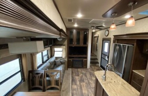 This RV is the PERFECT destination for your family vacation! It's a 2017 fifth wheel bunkhouse RV with top-notch amenities like a residential fridge with ice maker, two FULL BATHS and NO SETUP REQUIRED; just show up and enjoy!!
