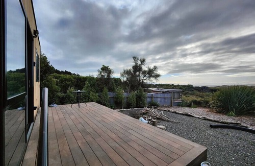 Escape to `Serenity by the Sea`, a tranquil tiny home tucked away in the breathtaking coastal haven of Omaui, Southland. Thoughtfully designed for comfort and relaxation, this charming studio unit offers everything you need for a peaceful getaway, all while showcasing stunning sea views and a direct connection to nature.
